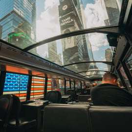Disfruta de una cena gourmet a bordo de un autobús de dos pisos con techo de cristal mientras recorres los monumentos más emblemáticos de Nueva York, con un menú gourmet de temporada diseñado para el viaje.
