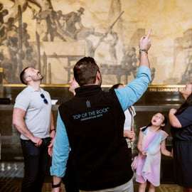 Sigue a tu guía en vivo para experimentar la rica historia y el impresionante arte del monumento más famoso de Nueva York con el tour del Rockefeller Center. El tour se realiza todos los días y dura 75 minutos.