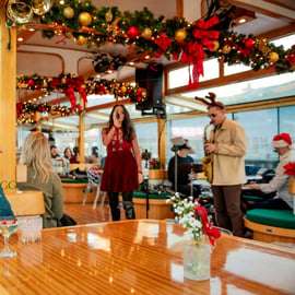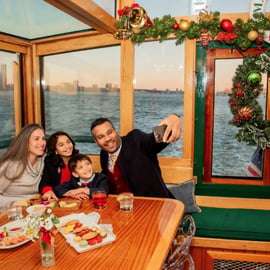 ¡Celebra la Navidad con un toque de lujo! Embárcate en un inolvidable crucero navideño de 90 minutos por el puerto de Nueva York a bordo de un elegante yate. Imagina: el cálido y acogedor solárium, decorado con el espíritu festivo, te espera para compartir una experiencia única con amigos y seres queridos.